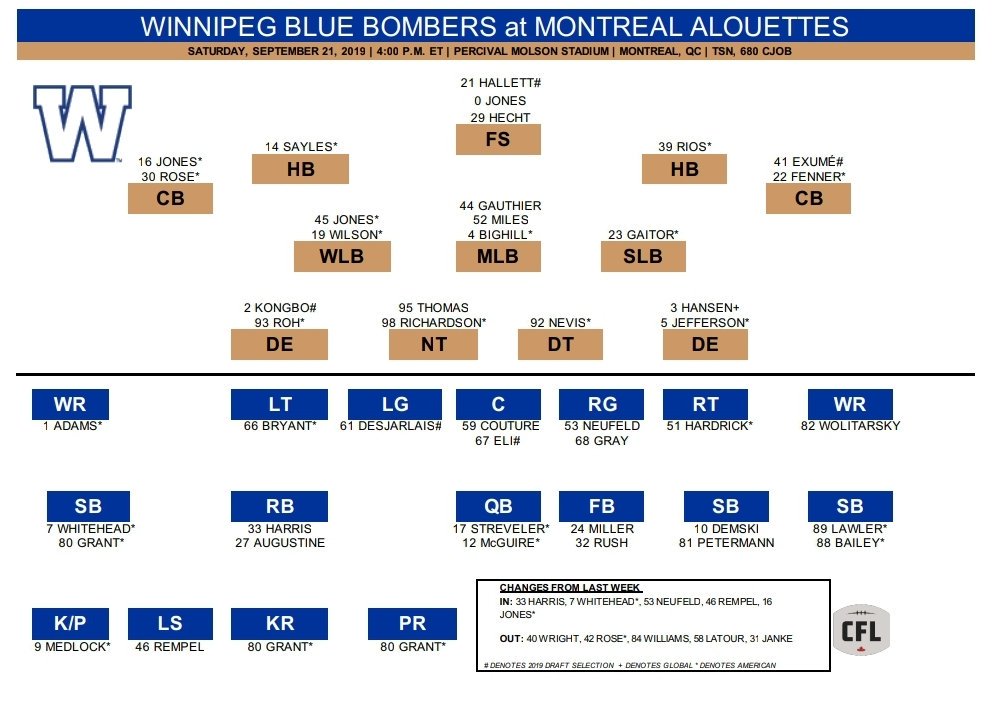 Jeff Hamilton On Twitter Bombers Depth Chart And Roster For Saturday S Game Against The Montreal Alouettes Patrick Neufeld Listed As The Starting Rg Wfp Https T Co Uxbvsmbyn8