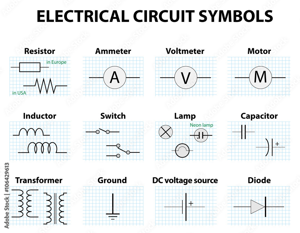 Common Circuit Diagram Symbols Stock Vector Adobe Stock